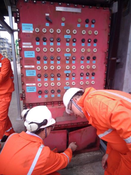 現場檢查發現,乙烯裝置烯烴轉換單元PR622E立柱上安裝的防爆接線盒(11FFJB-D-55020)接線松動