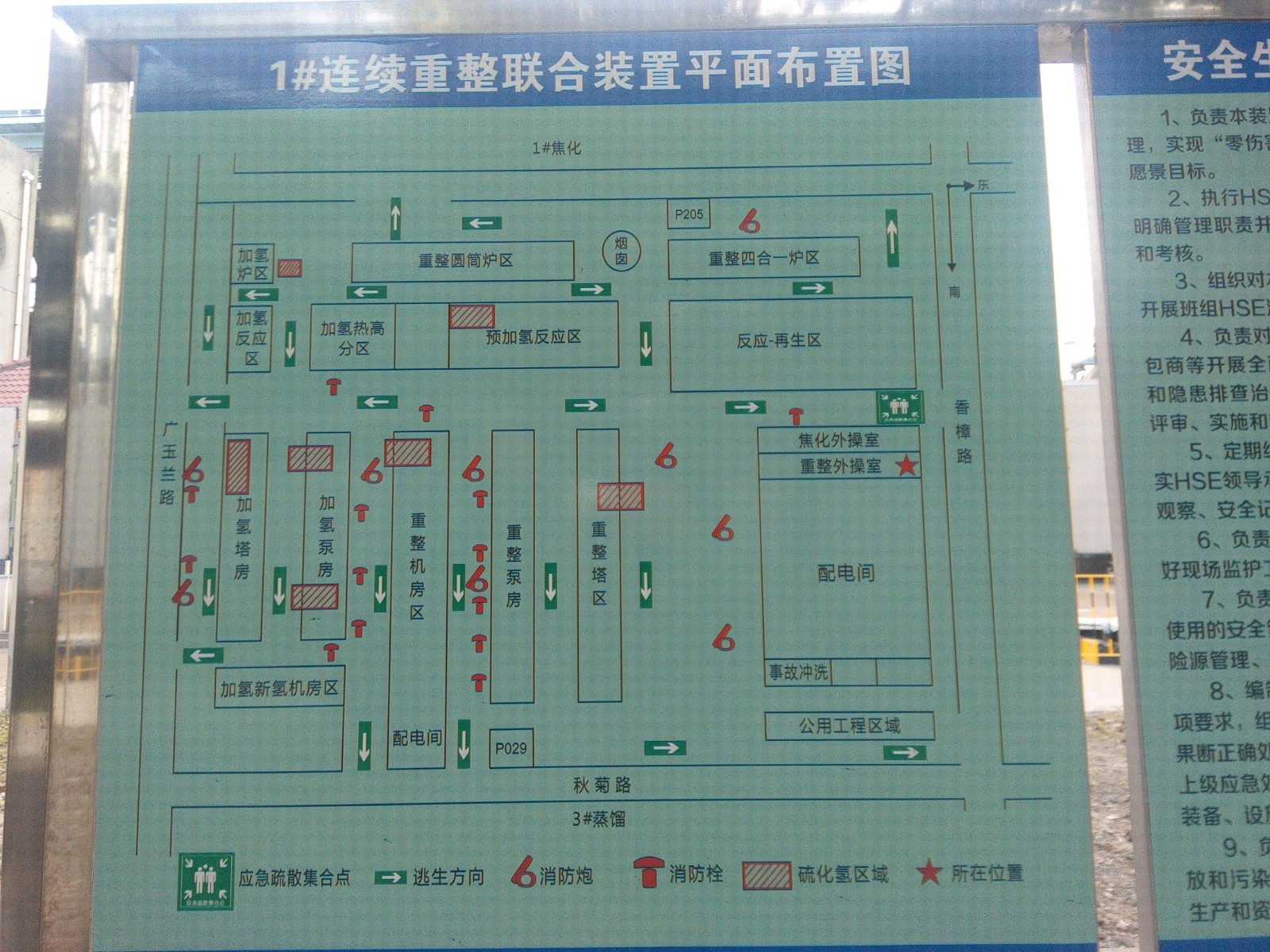 地理位置及周邊環(huán)境:#1連續(xù)重整聯(lián)合裝置東面為秋菊路;南面為廣玉蘭路;西面為桂花路;北面為香樟路。 加氫裂化裝置東面為煉油三部2#溶劑再生裝置和煉油四部酸性水氣提裝置,南面為儲(chǔ)運(yùn)部12#罐區(qū),西面為儲(chǔ)運(yùn)部16#罐區(qū)、煉油二部80萬(wàn)噸/年汽柴油加氫聯(lián)合裝置和煉油三部3號(hào)硫磺回收裝置,北面為煉油二部辦公樓。 300萬(wàn)噸/年直餾柴油加氫聯(lián)合裝置,東面為煉油三部3#催化裂化裝置,南面為煉油三部3#常減壓蒸餾裝置,西面為儲(chǔ)運(yùn)部2#聯(lián)合罐區(qū),北面為煉油三部辦公室。 | |